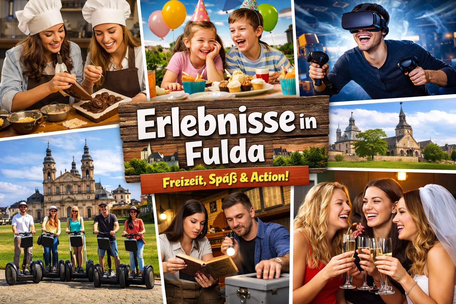 Ob Familienausflug, Treffen mit Freunden, Kindergeburtstag, Junggesellenabschied oder Teamevent: In Fulda gibt es viele Möglichkeiten, aus einem normalen Tag ein echtes Erlebnis zu machen. Wer nach Gruppenaktivitäten in Fulda, Ideen für Fulda mit Kindern oder einem besonderen Teamevent in Fulda sucht, findet hier für fast jede Situation das passende Format – von Escape Room und VR über DIY-Workshops bis zu Segway-Touren, Outdoor-Stadträtseln und geführten Erlebnistouren.