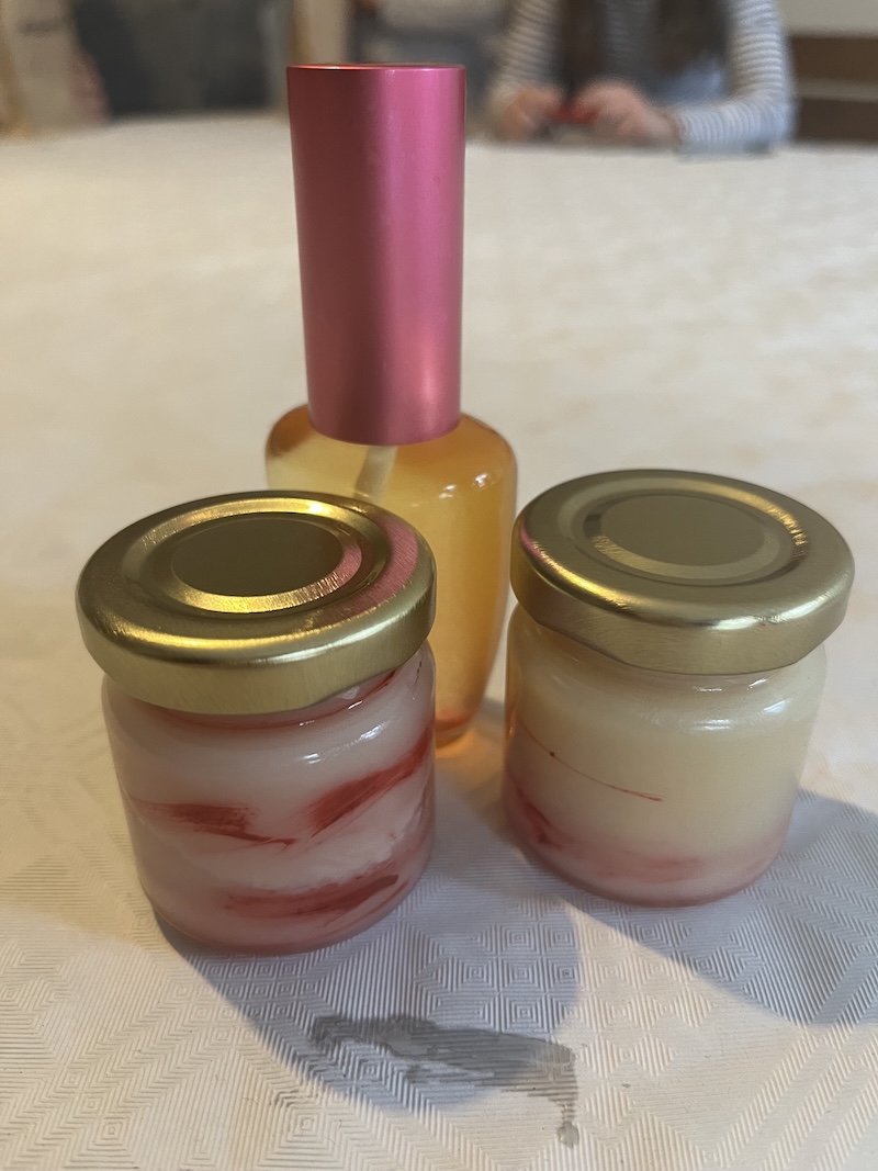 Jedes Kind stellt sich individuell Lippenbalsam und ein eigenes Parfüm her.